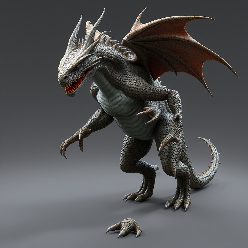 A draconian is a fearsome and cunning reptilian humanoid, a seven-foot-tall being born from the fusion of dragon and human elements. Its body is covered in scales and has a muscular build reminiscent of a dragon. The creature is captured in a walking pose, showcasing its powerful form. The detailed face and piercing eyes add to its terrifying presence. This image is a masterpiece, rendered in 8k photorealistic quality, reminiscent of the styles of Jeremy Mann, Sandra Chevrier, and Maciej Kuciara. The lighting casts realistic shadows, giving the impression of a real 3D figure. Avoid any visual imperfections, ensuring the image is clear and sharp, without any distortions or unnecessary elements.