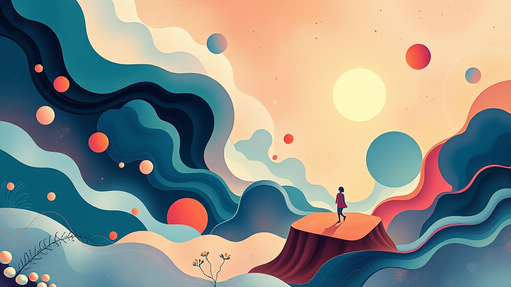 A dreamscape of minimalist marvels, where fantastical shapes and colors dance in an abstract ballet, invoking a sense of childlike awe and curiosity amidst flowing forms and ethereal echoes, blending seamlessly with a surreal tapestry of imagination infused with vibrant whispers of the unexpected.