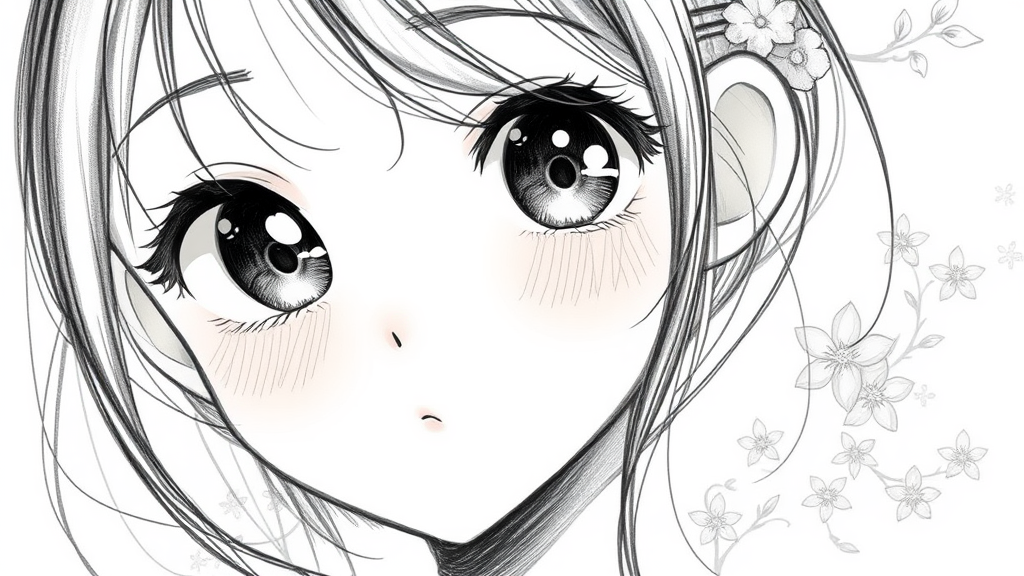 A dreamy and cute sketch of a female face with expressive eyes, blending the anime aesthetic with influences from the Pont-Aven and Barbizon schools. Utilize masterful shading techniques to explore texture, emphasizing heavy shading to create depth and dimension. Incorporate elements of nature and soft, fluid lines to capture a sense of whimsy and serenity. Let small creative touches, like delicate floral patterns or ethereal light reflections, enhance the enchanting quality of the artwork.