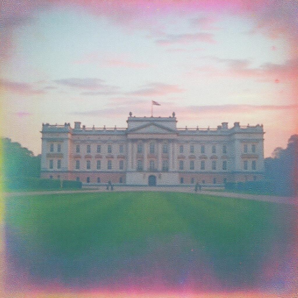 A dreamy portrait of a UK palace captured through the lens of disposable photography, evoking a sense of nostalgia and ethereal beauty, with soft, hazy edges that frame the historic architecture, enhancing its grandeur while bathed in the gentle glow of a fading sunset sky, showcasing intricate details softly blurred, maintaining an air of enchanting mystery, with suggested dimensions in a 3:4 aspect ratio whispering tales of a bygone era.