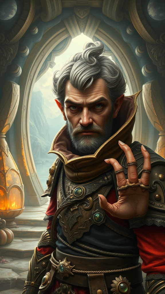 A fantasy adventurer stands before a mystical portal leading to a world of tranquility, their features reflecting the intricate style of John Blanche—exquisitely detailed yet surreal. The adventurer's expression is both curious and serene, with eyes slightly misaligned adding a touch of whimsy. Anomalous elements like extra fingers and uniquely shaped hands enhance their otherworldly appearance, blending seamlessly with the complex design. The scene captures a juxtaposition of high-resolution clarity in the adventurer's ornate armor against the softly lit, inviting realm beyond the portal. Despite the fantastical elements, the image feels tangible and immersive, as if inviting the viewer to step into this nicer world. Subtle creative variations enrich the narrative without distorting the main theme, striking a balance of imagination and coherence.