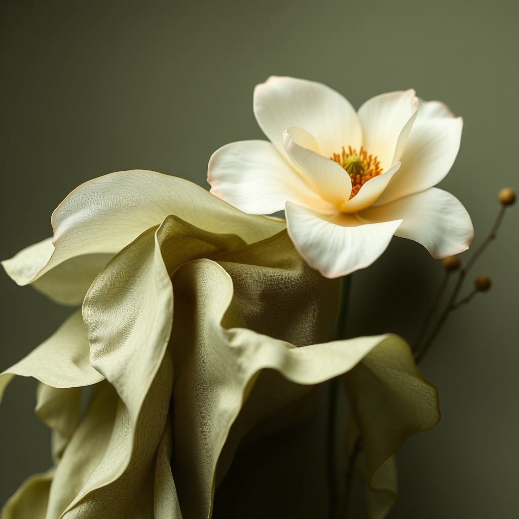 A fashion concept emerges, drawing inspiration from the elegance of botanical elements, weaving together the delicacy of floral patterns with the richness of organic textures. Envision a collection where garments flow like petals in a breeze, with natural color palettes of soft greens, earthy browns, and subtle floral hues. Each piece captures the essence of nature, offering sophisticated silhouettes that mimic the graceful arch of a leaf or the gentle curve of a flower stem. Fabrics imbued with a tactile quality resemble the feel of soft moss or the delicate structure of a petal, wrapped in designs that are sophisticated yet infinitely wearable. This collection embodies a serene elegance, where nature's beauty is interpreted through the lens of high fashion.