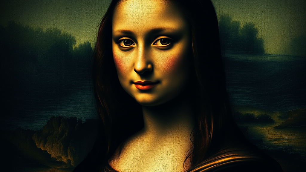 A formidable Mona Lisa envisioned in the dark, whimsical style of Tim Burton, capturing cinematic realism with intricate detail. She fixes a piercing gaze at the camera, exuding an aura of gothic allure, enveloped in a shadowy atmosphere reminiscent of a gothic film noir. The composition echoes the artistic elegance of the classic portrait, with a vertical orientation and a touch of eerie mystique.