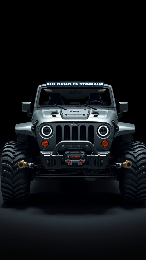 A futuristic, armored sci-fi Jeep inspired by the rugged and iconic style of Halo, combined with the imaginative design elements of alternate car one concept. Influenced by the visionary aesthetics of Sid Mead and Alex Ross, the design features intricate details and conceptual art intricacies. The vehicle is presented in a matte finish with highly detailed components, captured using the rule of thirds for a balanced and engaging composition. Dynamic lighting enhances the cinematic atmosphere, focusing on the Jeep's robust and versatile look. The clean render showcases a denoised, centrally positioned model, highlighting its sleek curves and bold lines. Small creative modifications include a seamless integration of advanced tech elements and subtle color variations to give the design a unique twist while maintaining its core essence.