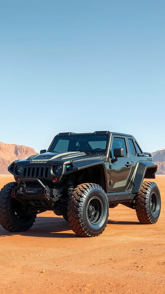 A futuristic armored sci-fi Jeep reminiscent of the Halo universe, featuring sleek and robust design elements with influences from Alternate Car One, showcasing a blend of Sid Mead’s visionary style and Alex Ross’s dynamic artistry. The vehicle boasts intricate details with a focus on concept art principles, complemented by matte painting aesthetics. It is highly detailed, adhering to the rule of thirds for composition, with dynamic lighting that emphasizes its cinematic presence. The render is clean and denoised, centered to draw attention to the vehicle’s innovative features and futuristic appeal, all contributing to a visually striking design.