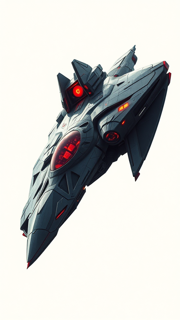 A futuristic combat spacecraft with a sleek, aerodynamic design glides against a pale backdrop, exuding an aura of otherworldly menace. Its intricate architecture mirrors a fusion of artgerm's dynamic style, H. R. Giger's biomechanical intricacy, and Beksinski's surreal vision. This masterpiece, a matte painting cinematic poster, embodies the golden ratio with its flawless composition. Illuminated with vibrant hues, the spacecraft is a testament to ultra-high-quality craftsmanship, capturing epic space opera drama. Intricate details and a striking, ominous aesthetic ensure it's a trending sensation on ArtStation and CGSociety, a true homage to visionary artistry.