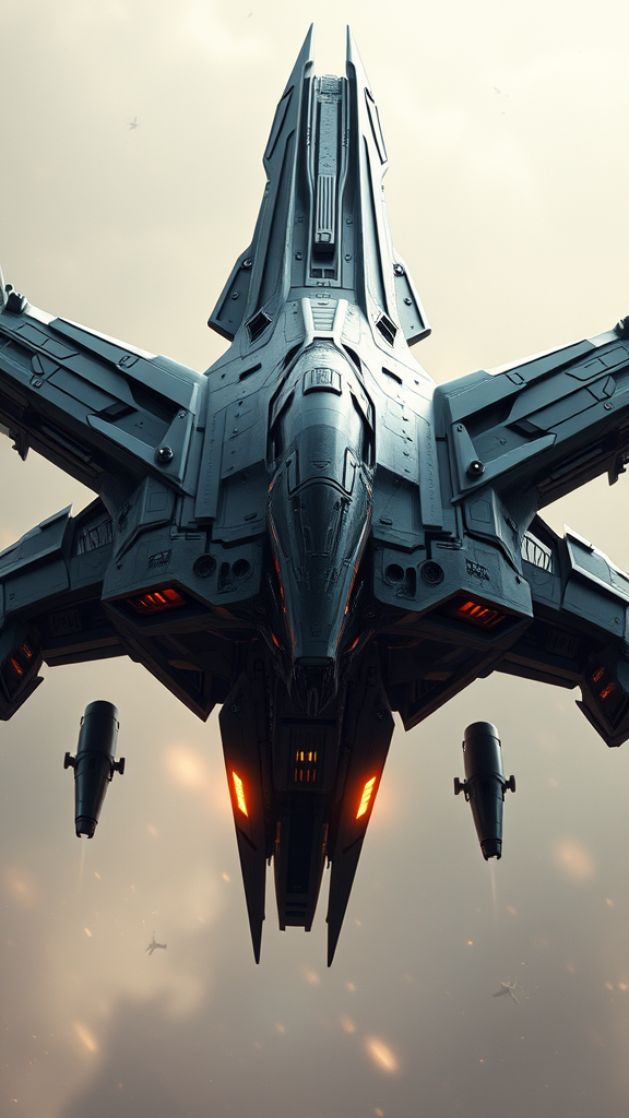 A futuristic combat spacecraft with a sleek, aerodynamic design set against a light, ethereal background, sci-fi intricate masterpiece, haunting yet captivating, matte painting style of a film poster, embodying the golden ratio, trending on CGSociety, complex and grand, trending on ArtStation, reminiscent of the styles of Artgerm, H.R. Giger, and Beksinski, incredibly detailed, vivid, resembling a high-budget cinematic character render, ultra-high-definition model, with subtle bioluminescent accents illuminating its form and a mysterious, foreboding aura.