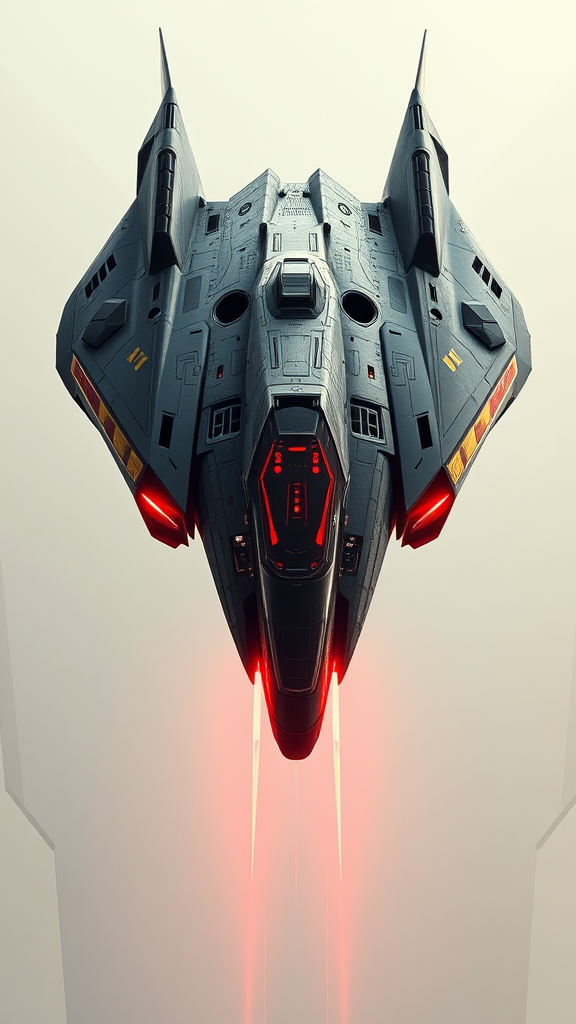 A futuristic combat spacecraft with a sleek, aerodynamic design, set against a light backdrop, sci-fi themed, featuring intricate and masterful artwork, exuding an ominous atmosphere, matte painting movie poster style, framed by the golden ratio, gaining traction on cgsociety and artstation, inspired by artgerm, h. r. giger, and beksinski, showcasing highly detailed, vibrant, cinematic character render, ultra high definition model, captivatingly epic and trending in digital art communities, with subtle creative enhancements while preserving the essence.