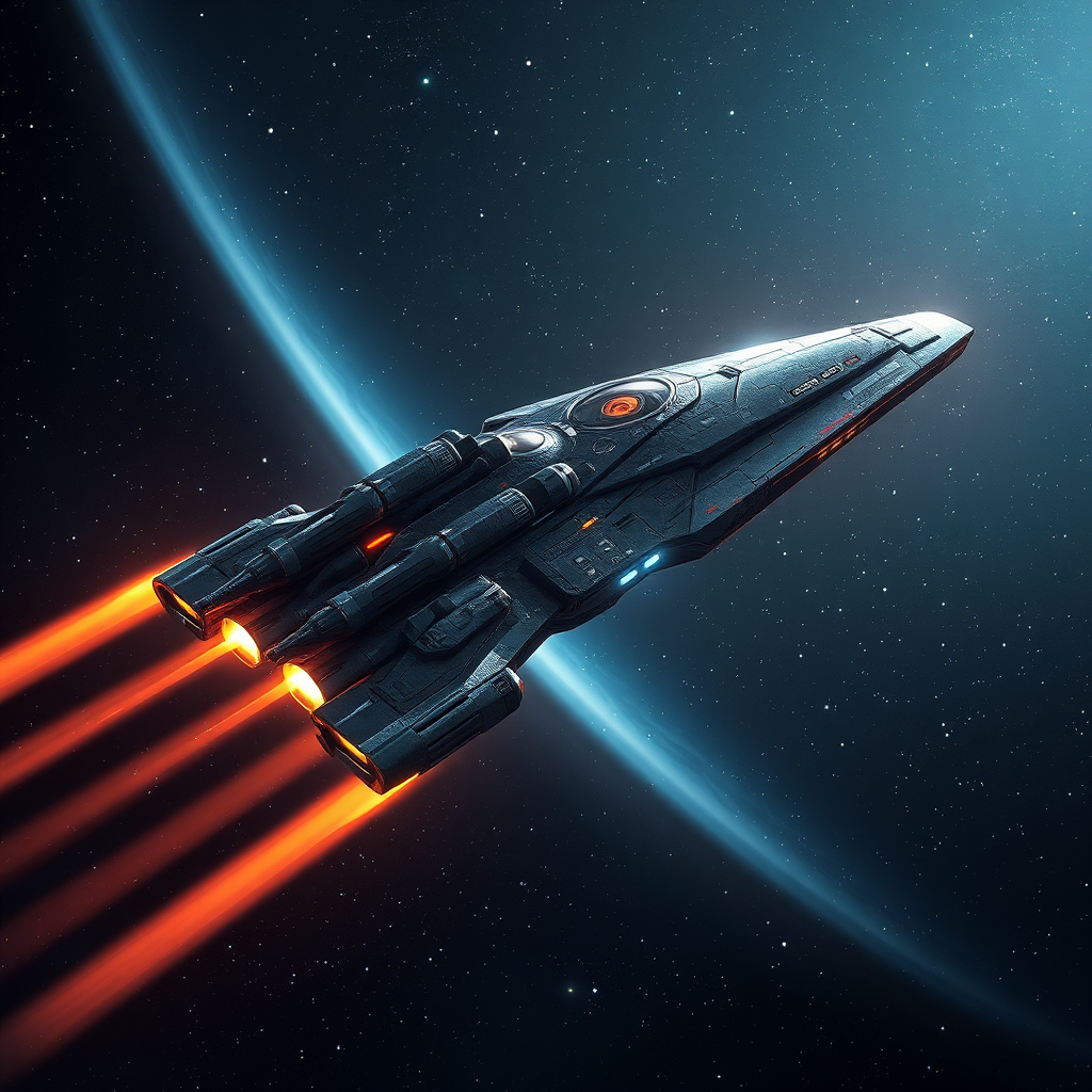 A futuristic space fighter navigates through the vastness of deep space, featuring an intricate, complex texture that embodies the essence of Chris Foss and Homeworld styles. The scene is illuminated by distant stars, casting a cosmic glow that emphasizes the dynamic motion of this advanced spacecraft. Set against an expansive galactic backdrop, the illustration captures a cinematic and dramatic flair, viewed from a god's eye angle. Rich, vibrant colors contrast with the dark void of space, enhancing the photorealistic quality of this highly detailed digital artwork. The composition is in high definition 8K super-resolution, showcasing the space fighter's sleek design and the intricate heavenly tapestry with unparalleled clarity.