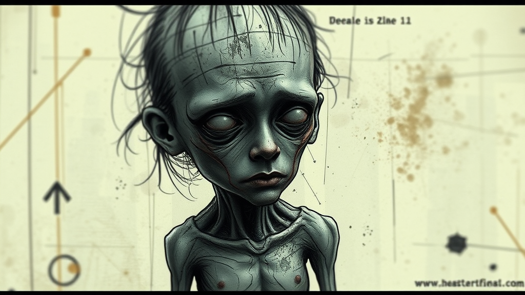 A gritty depiction reminiscent of Jorge Zaffino's style showcasing a blurry and grainy representation of an abstract figure with distorted anatomy and exaggerated proportions. The image features repetitive elements and visible artifacts, such as text and watermarks, with poorly drawn limbs and facial deformities. The overall quality is low, with jpeg artifacts and a cut-off composition, heavy censoring, and an impression of plastic textures, giving it a raw and unrefined appearance.