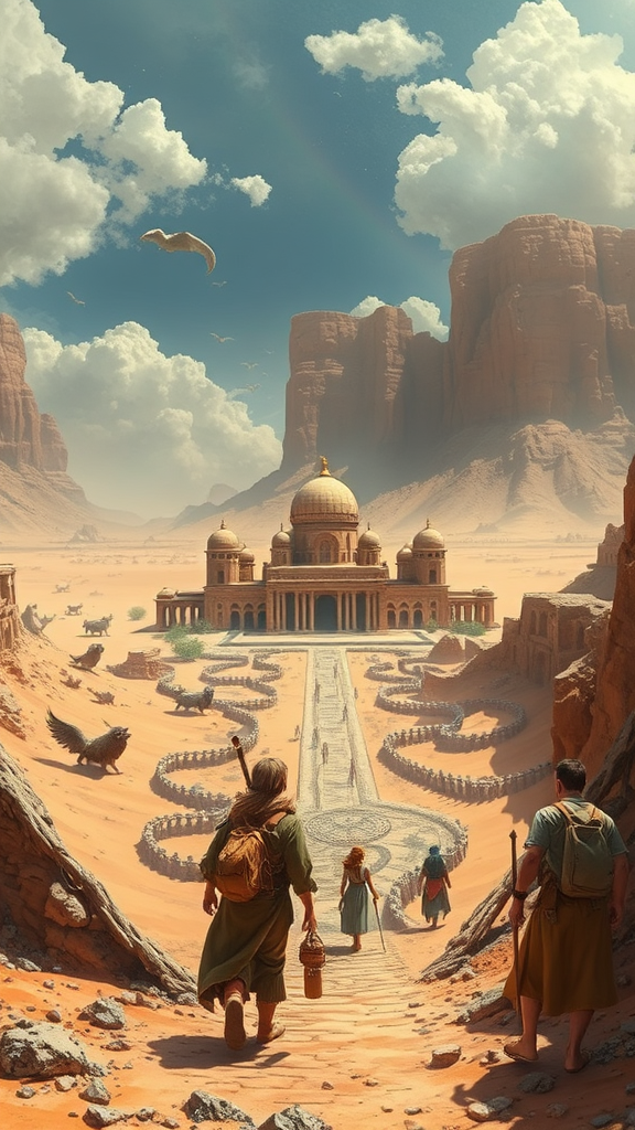 "A group of adventurers discovers an ancient map leading to a hidden city beneath the desert, rumored to be filled with lost treasures and guarded by mystical creatures."