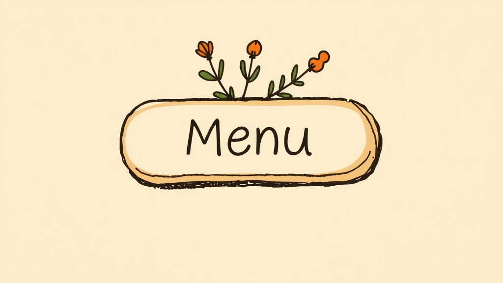 A hand-drawn icon of a menu button in an earthy color palette, inspired by Marc Chagall's artistic style, featuring natural elements. The icon is set against a beige background, merging organic forms with whimsical, dream-like details, while maintaining simplicity and functionality typical of a UI/UX design.