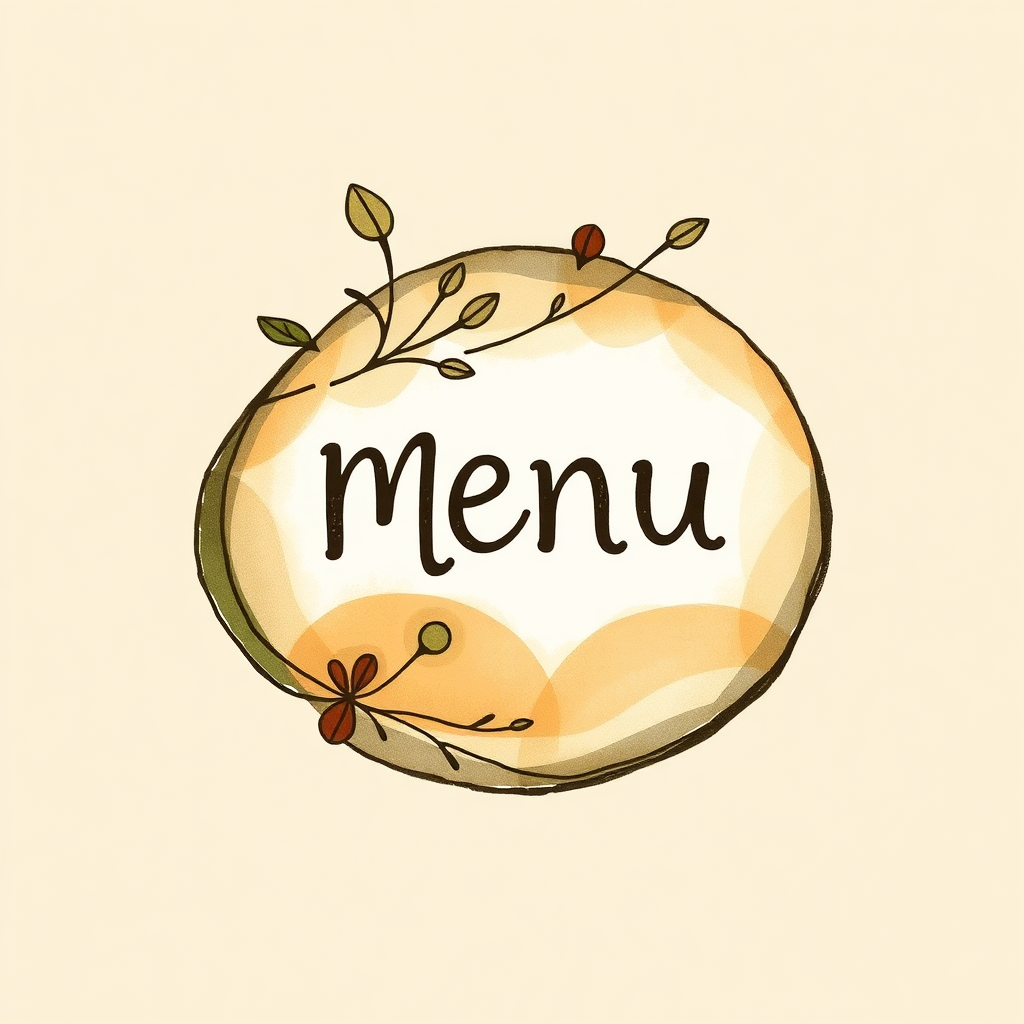 A hand-drawn icon of a menu button inspired by Marc Chagall, featuring an earthy palette with natural elements, set against a beige background, showcasing fluid and organic lines with a whimsical touch, incorporating subtle textures and a harmonious blend of colors.