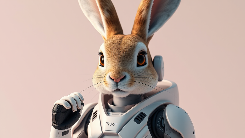 A hare in an advanced robotic suit, dreamworks-inspired, soft pastel hues, lifelike and nuanced lighting and shadows, high resolution, exquisite detailing, 3D rendering, created in C4D, octane rendering, ray-traced, 8k resolution.