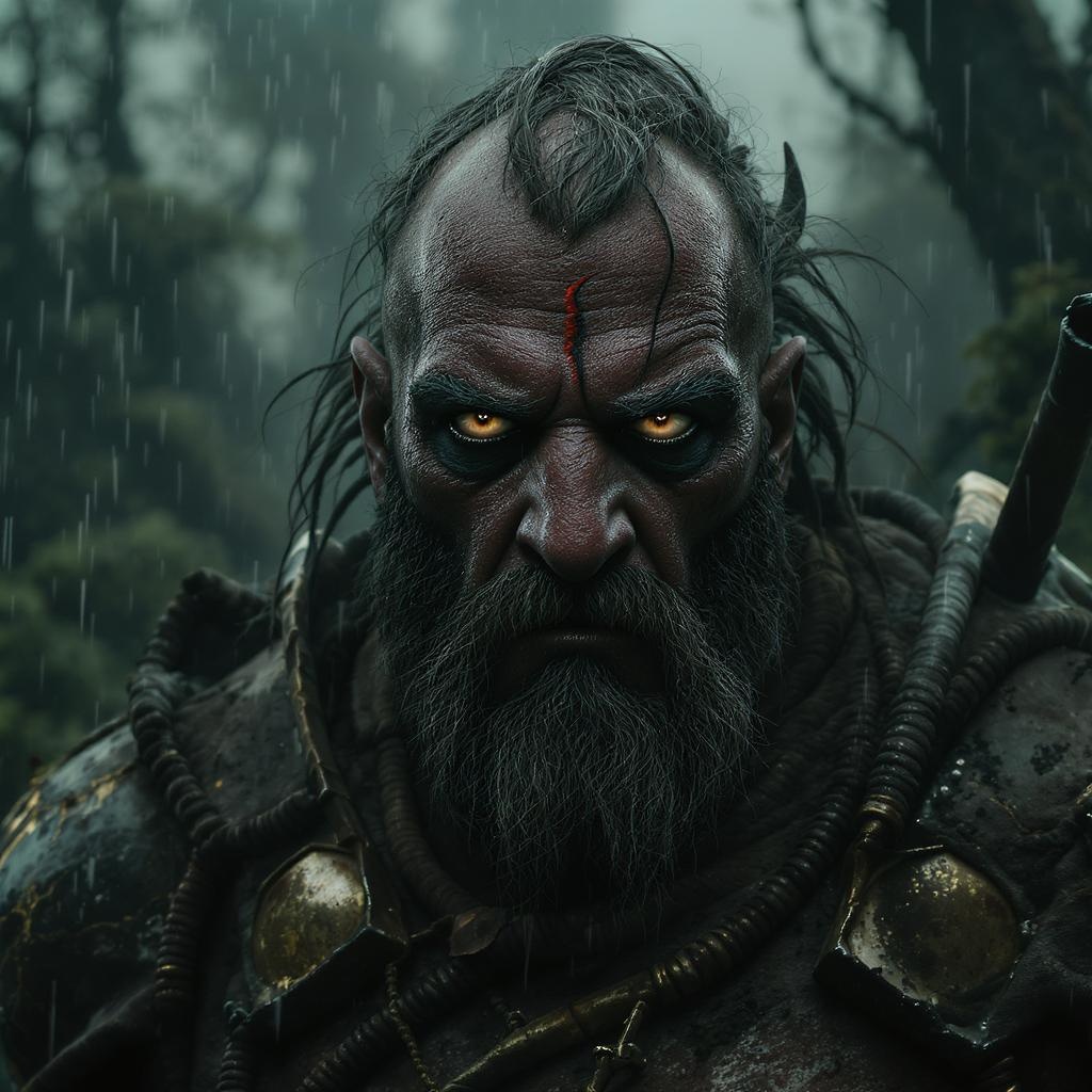 A haunting depiction of the horseman of the apocalypse, Hunger, emerges with a visage etched in intricate detail, his expression a blend of desperation and determination. The backdrop is a lush, vivid environment shrouded in ethereal fog, lending an air of mystery and decay. Metallic elements weave through the scene, adding a steely glint to the apocalyptic landscape. Cinematic lighting casts dramatic shadows across his face, highlighting the intensity in his eyes. Imagined through the lens of Annie Leibovitz, the composition offers a poignant character portrait, retouched by Pratik Naik to enhance every nuanced detail of texture and light, capturing the essence of apocalypsecore with subtle creative flourishes.