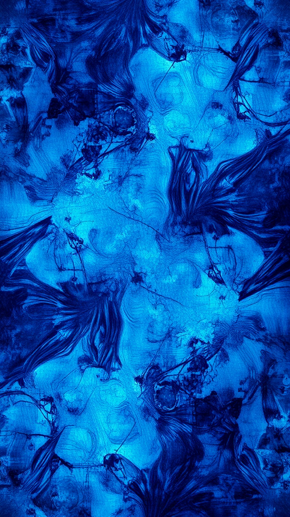 A high-definition abstract image in varying tones of blue, from light to deep, featuring an intricate and rich geometric pattern interspersed with dynamic, swirling elements that appear to be in motion, creating a sense of depth and energy throughout the composition.