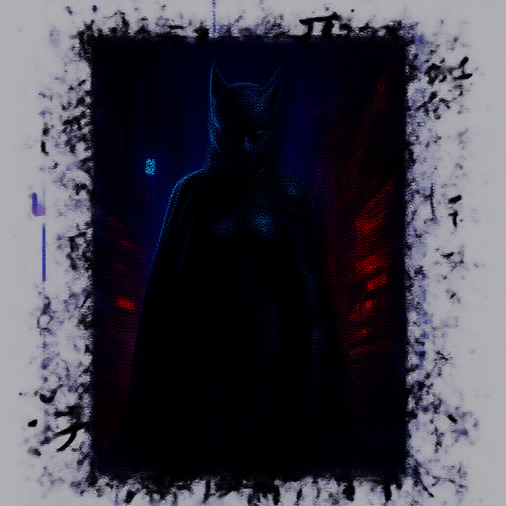 A high-definition poster featuring Batgirl in Tokyo, encapsulating a cyberpunk aesthetic inspired by the work of Maciej Kuciara. The cityscape is drenched in neon hues, reflecting a dystopian yet vibrant atmosphere. Buildings appear fragmented and layered, echoing deconstructivism principles. Dark synthwave colors saturate the scene, enhancing the futuristic and enigmatic aura. Japanese characters overlay the image, harmonizing with the urban chaos. This artistic composition resonates with CGSociety artistry and Behance-level detail, framed by a large white border for dramatic emphasis.
