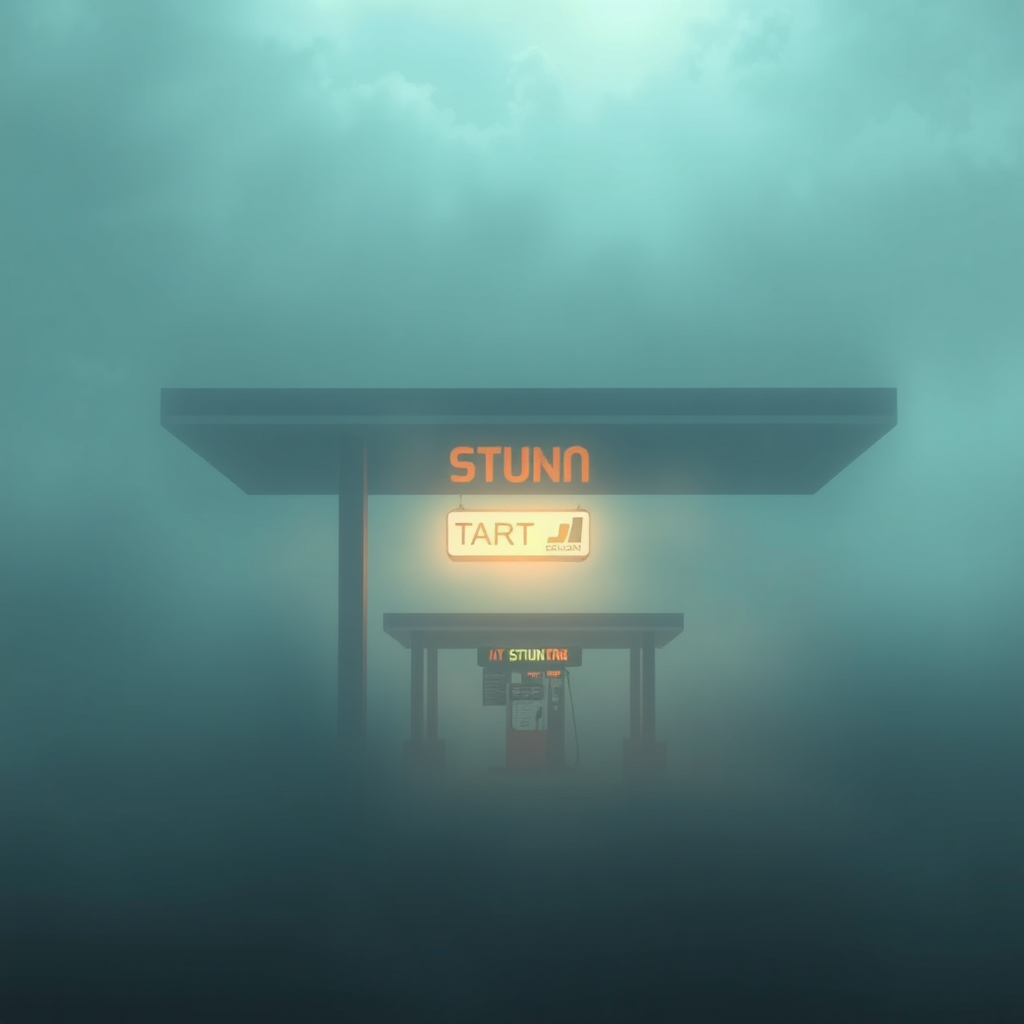 A highly detailed matte painting of a solitary gas station enveloped in a dense fog, inspired by the enchanting style of Studio Ghibli and Makoto Shinkai. The scene captures the essence of an artgerm illustration blended with the ethereal touch of WLOP and the finesse of Greg Rutkowski. Volumetric lighting bathes the scene, accentuating the surreal atmosphere, as if rendered in octane for a lifelike feel. The gas station sign glows softly through the mist, adding intrigue to the mysterious setting. The artwork is created in 4K resolution, making it a standout piece trending on ArtStation, celebrated as a masterpiece. Subtle creative adjustments enhance the core concept, maintaining the ethereal quality and dreamlike aura reminiscent of a cinematic moment.