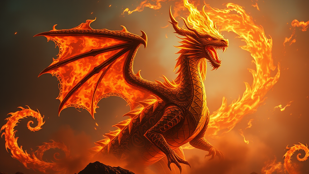 A hyper-maximalist cinematic portrayal of an intricately detailed, colossal royal fire dragon, alongside his mesmerizing queen of flames, within the mythical Magic: The Gathering universe. They are encircled by spirals of fiery brilliance against a backdrop of dense, dark fog, exuding an ominous atmosphere. The scene is captured in a magnificent pose with dramatic lighting and shadows that emphasize the ornate and complex symbolism akin to orthodox themes. Designed for ArtStation, it boasts a flawless composition, infusing elements of ambient, magic realism, and tribal dark fantasy. The artwork is rendered in stunning 8k resolution, highlighting the fantastical aesthetics and intricate details of this imaginative setting.
