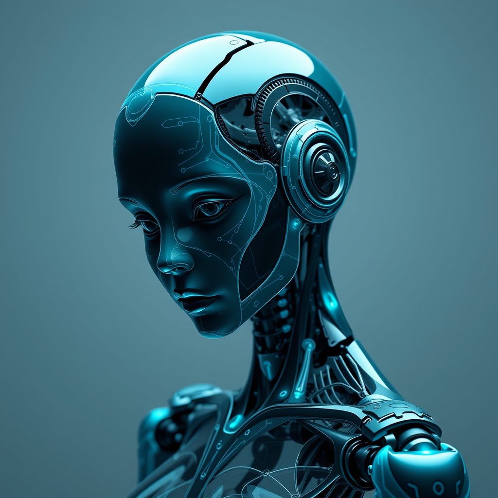 A hyper-realistic depiction of a humanlike android with a feminine form, envisioned in the style of an x-ray film, featuring dark cyan and black hues. The design emphasizes graceful, sculpture-like aesthetics and exudes a sense of youthful energy. The focus is on the intricate details of the joints and connections, capturing the essence of a meticulously crafted, lifelike creation.