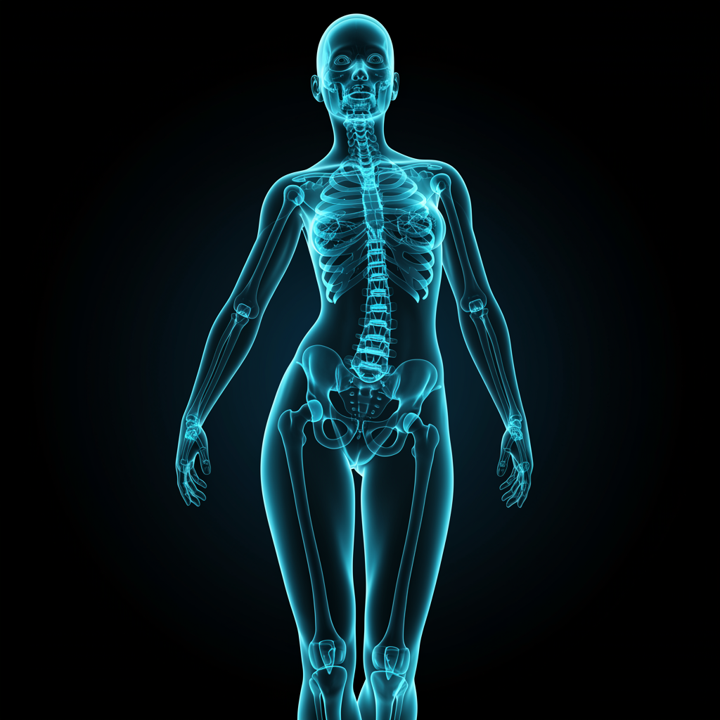 A hyper-realistic x-ray film portrayal of a humanlike android exhibiting a feminine form, with a palette of deep cyan and black. The design captures a balance of youthful energy and graceful sculpture, with an emphasis on the intricate details of joints and connections. The imagery evokes the sophistication of raw, lifelike machinery, maintaining an aura of sleek modernity and dynamic elegance.