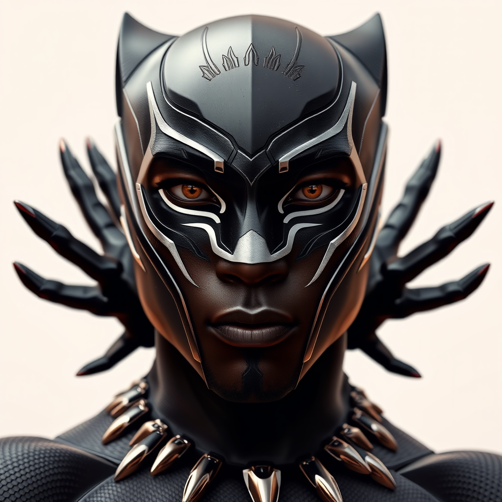 A hyperrealistic and cinematic full body portrait of Chadwick Boseman as Black Panther, striking a powerful pose with intricate and vibrant details. The piece is inspired by cinematic lighting and is designed to emulate the style trending on Artstation. Although maintaining high focus and showcasing extreme details with unreal engine 5 quality, it intentionally incorporates artistic imperfections for an abstract twist: elements like subtly blurred parts, draft 2D qualities, and distorted features. The overall composition plays with non-traditional anatomy and surrealistic aspects, integrating aspects like extra limbs and unconventional body positioning. Despite these creative liberties, the portrayal remains a tribute to the iconic character, with a nod to both realism and imaginative expression.
