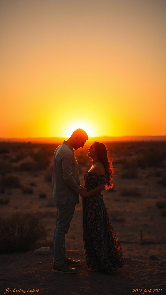 A love story unfolds in the fiery glow of a desert sunset.