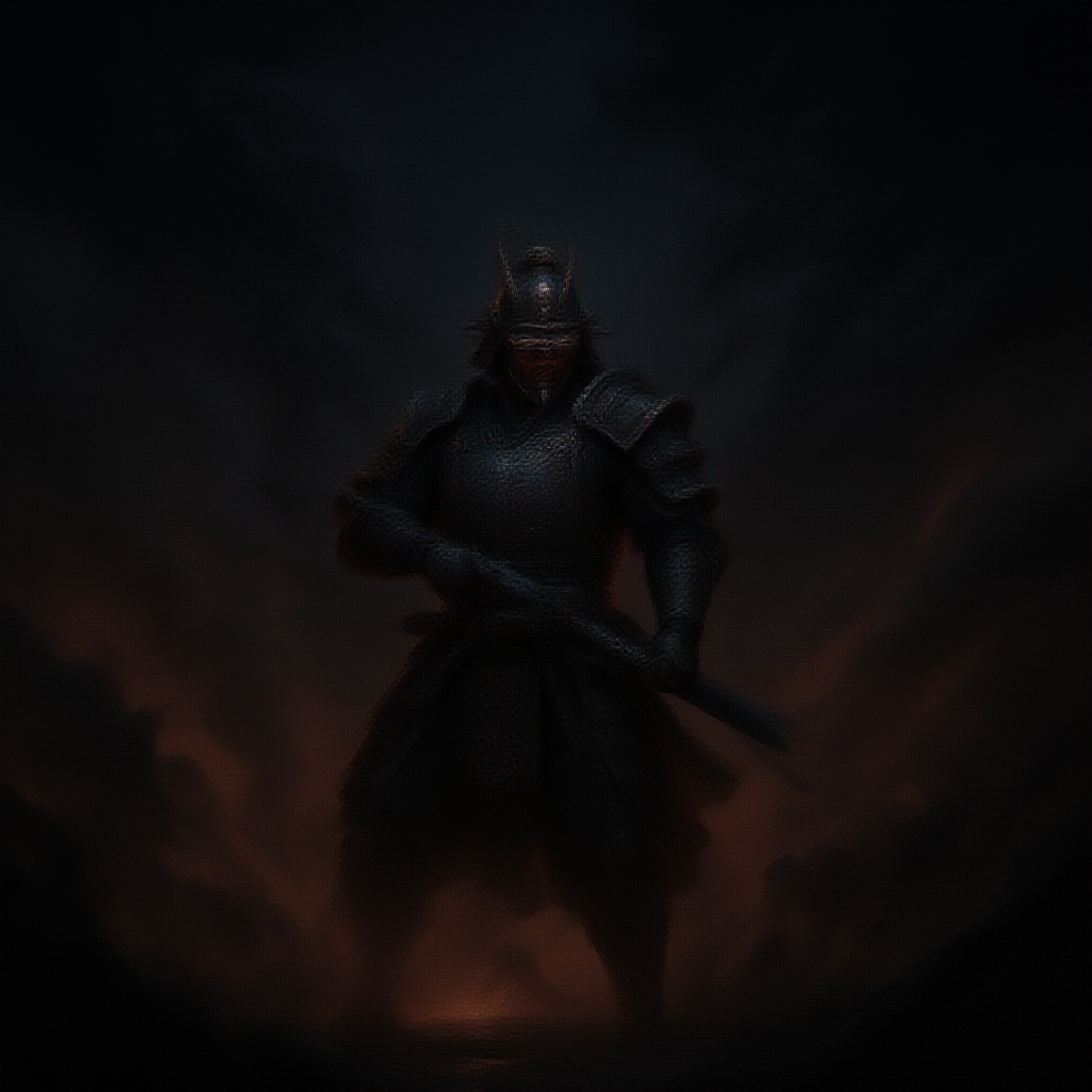 A masked divine samurai, cloaked in full-body galaxy armor, unleashes a formidable attack on adversaries with his mystical katana in a grim battle scene. He stands amidst swirling plumes of jet-black smoke and charcoal, the air bursting with vibrant color. Set in the Sengoku period, the scene is incredibly detailed, morbid, and dark, capturing key visuals with volumetric light. Inspired by a fusion of Greg Rutkowski and Peter Mohrbacher's artistic styles, the atmosphere is both renaissance and highly realistic. The ultra-wide epic shot, rendered in Unreal Engine 5, captures the intense and atmospheric battle, with an aspect ratio of 16:9, making minor creative adjustments while staying true to the core concept.
