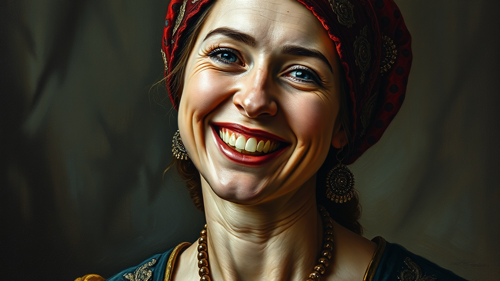 A masterful portrait of a 12th-century woman, her expression radiating joy with a serene and content look, set against the backdrop of the 12th century. The painting is a vivid tableau of heavy brushstrokes and impasto technique, each stroke richly textured and highly detailed, capturing the essence of her intricately adorned attire and highly textured skin. Bathed in dramatic, cinematic lighting, the portrait exudes a timeless and evocative quality, reminiscent of the brilliant works by Vittorio Matteo Corcos, Albert Lynch, and Tom Roberts. The composition is rendered in oil, achieving an 8k resolution of visual splendor, a piece that is currently trending on ArtStation for its compelling blend of classical elegance and intricate artistry. The canvas holds a gentle breeze of creativity, with subtle modern touches seamlessly woven into the historic tapestry.