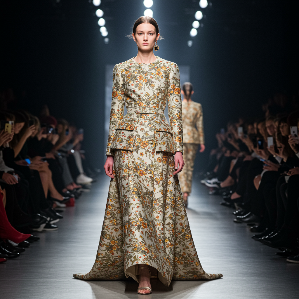 A mesmerizing fashion show unfolds with breathtaking haute couture outfits on display, each piece meticulously crafted to highlight the tiniest details. Models glide gracefully down the catwalk, confidently capturing attention beneath the dazzling spotlights. Every seam, bead, and fabric choice contributes to the stunning narrative, making each ensemble a masterpiece of style and innovation.