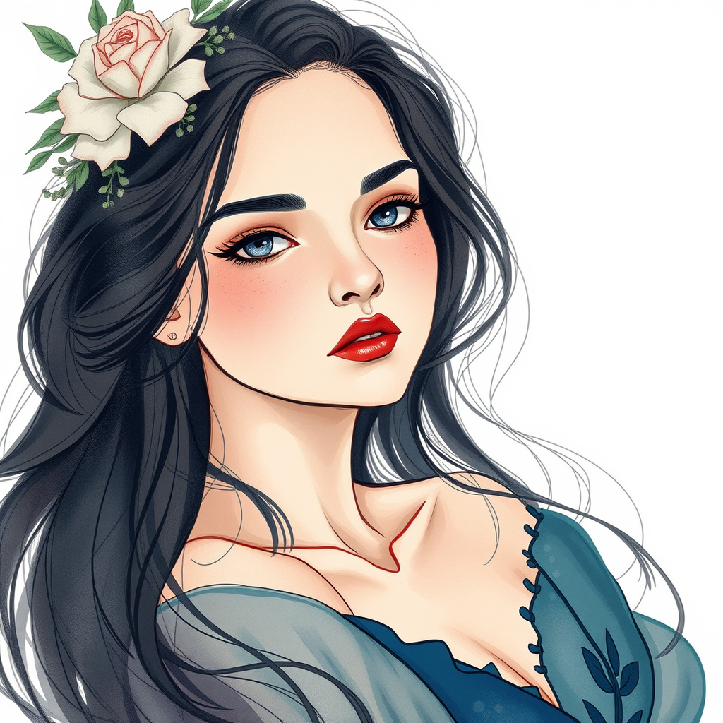 A mesmerizing illustration of a woman, crafted in the essence of cinematic montages and nature-infused Art Nouveau, with a dreamy, soft-focus touch that evokes breathtaking beauty; minimalist sketches capture her essence through graceful curves and fluid free brushwork, with subtle personal nuances, set in an aspect ratio of 1:2 and a heightened stylistic flair.