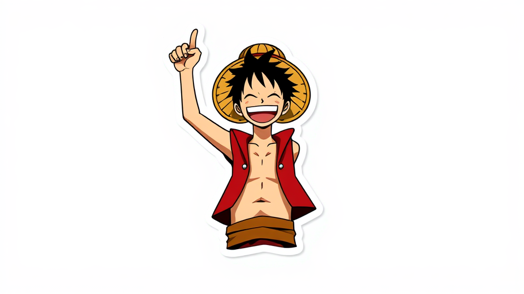 A minimalist anime-style sticker featuring Monkey D. Luffy from One Piece, showcasing him with his iconic straw hat and a joyful, triumphant expression. The design should be sleek and modern, capturing Luffy's adventurous spirit and determination, and reflecting a style that is popular on ArtStation. Adjustments may include subtle color variations or stylistic elements to add a unique flair while maintaining the essence of the character and the original inspiration.