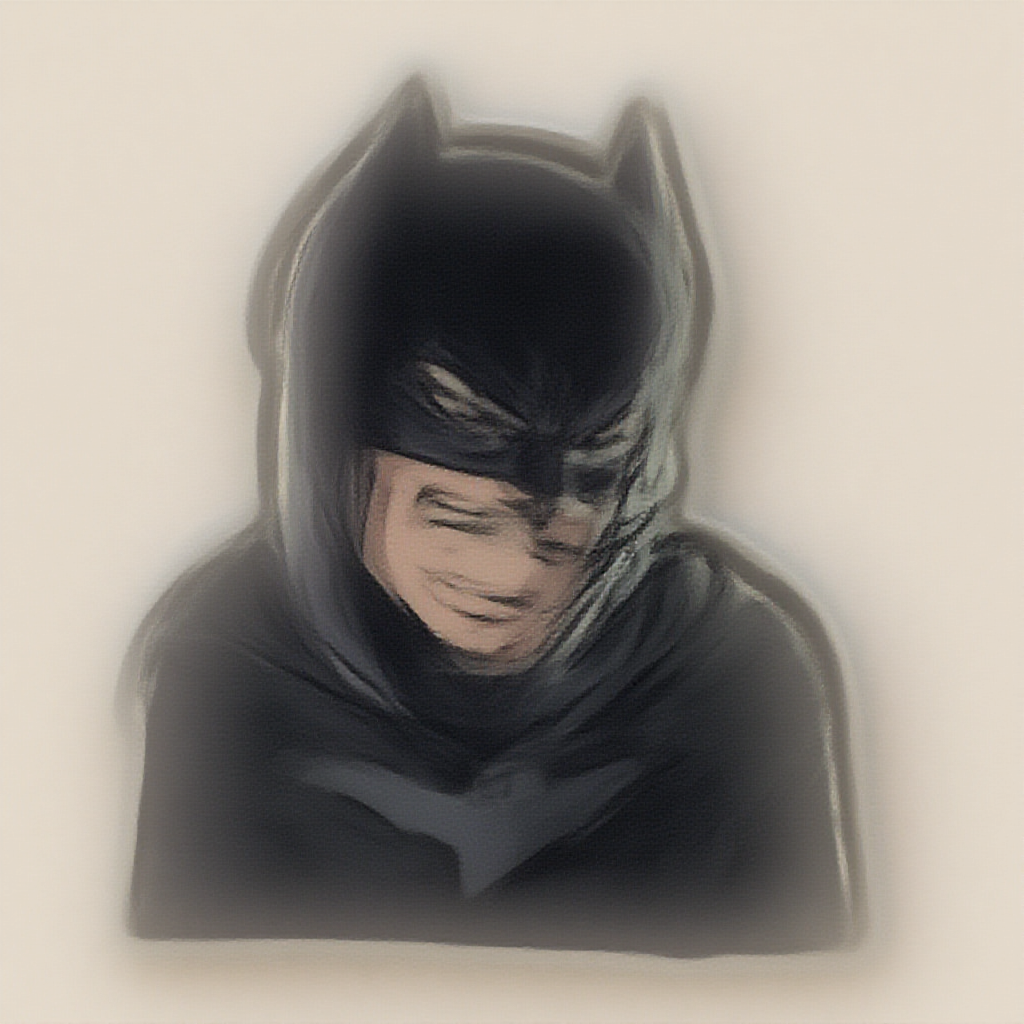A minimalist anime-style sticker of Batman featuring a subtle smirk, inspired by trending ArtStation designs, with a unique and creative twist, maintaining a sleek 2:3 aspect ratio.
