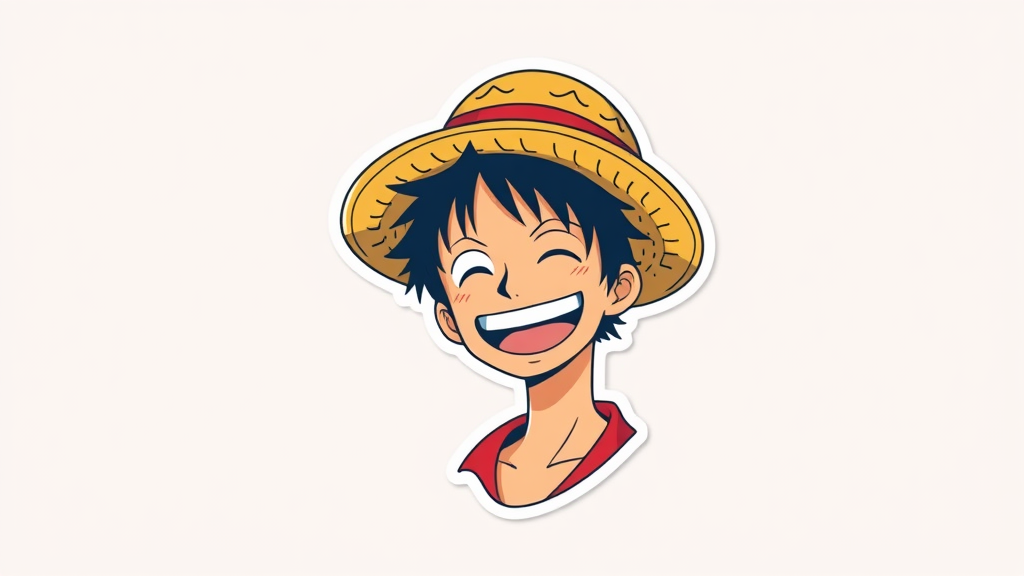 A minimalist anime-style sticker of Monkey D. Luffy from One Piece, featuring his iconic straw hat and a joyful expression, embodying a sense of adventure and success, with a trendsetting design that would be popular on ArtStation, set in a warm, vibrant color palette and a 2:3 aspect ratio, showcasing his carefree spirit and determination.