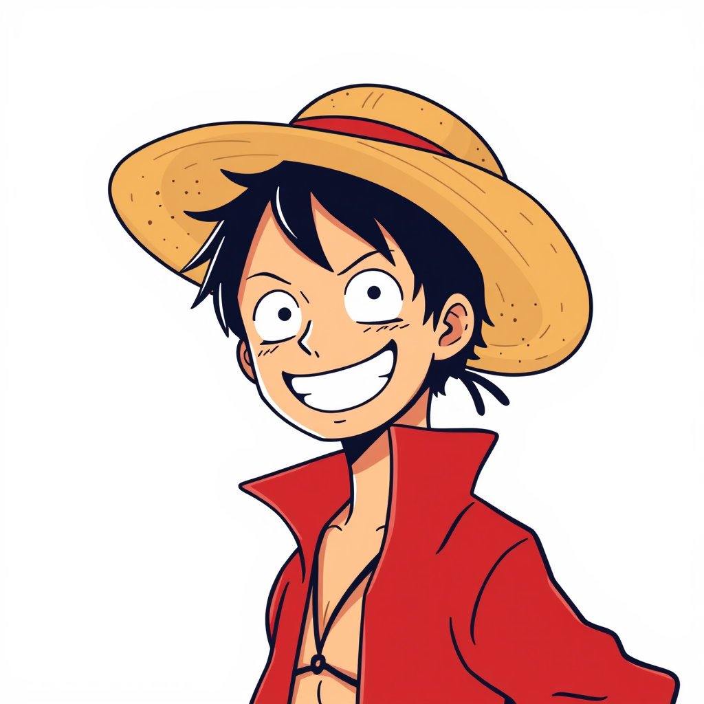 A minimalist sticker design of Monkey D. Luffy from One Piece, featuring his iconic straw hat and an expression of happiness and success. Rendered in a clean, anime style with bright colors, the image captures Luffy's adventurous spirit and charm. This artwork is designed in a vertical 2:3 aspect ratio, blending simplicity with character, making it a popular choice on platforms like ArtStation. Subtle creative elements add a fresh twist to the classic depiction, highlighting Luffy's joyful and triumphant personality.