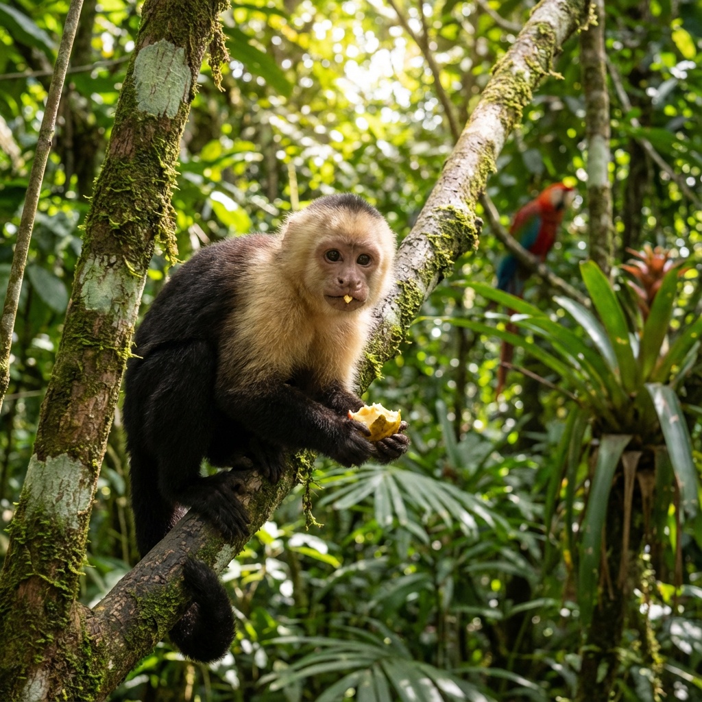 View this AI-generated image featuring a monkey. Created using advanced AI technology, this image showcases creative visuals, AI artwork. Perfect for creative projects, digital art, inspiration.