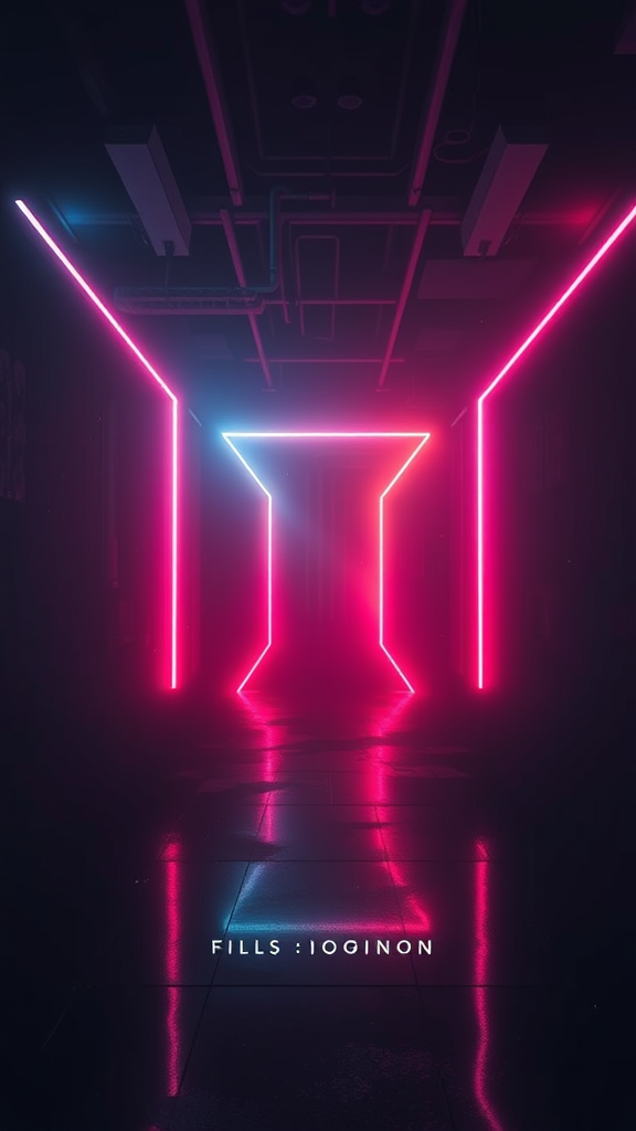 A moody and immersive techno album cover design featuring abstract geometric patterns and shadowy gradients, with pulsating neon highlights casting enigmatic reflections, all evoking the sensation of being drawn into a deep, introspective journey through sound and light.
