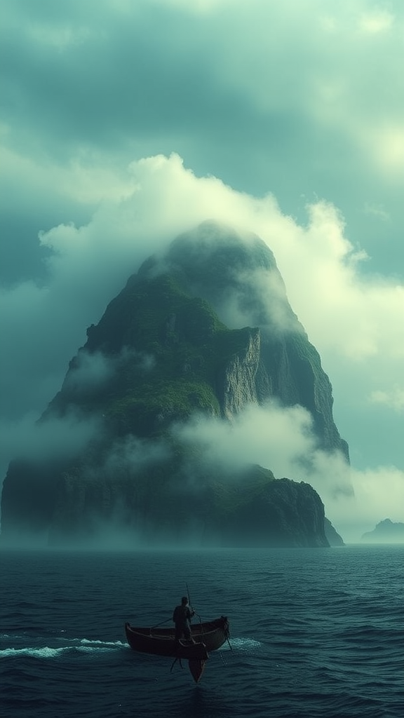 "A mysterious island emerges overnight, shrouded in mist, where the laws of nature seem warped and time flows unpredictably, enticing curious explorers with the promise of forgotten civilizations and ancient wisdom."