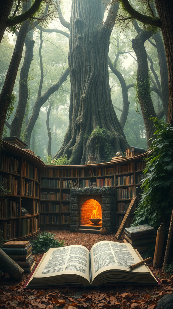 A mysterious library hidden within an ancient forest holds books that whisper their stories, where every page turned opens a portal to a vivid world of timeless adventures and secret knowledge waiting to be discovered by those who dare to enter.
