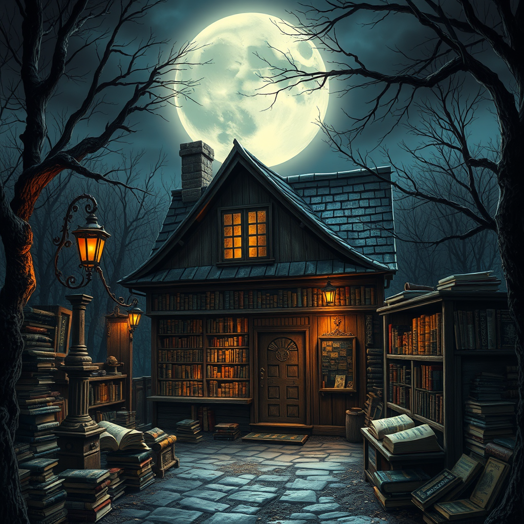 A mysterious old bookstore appears only during the full moon, where each book read transports the reader into its story until dawn breaks.