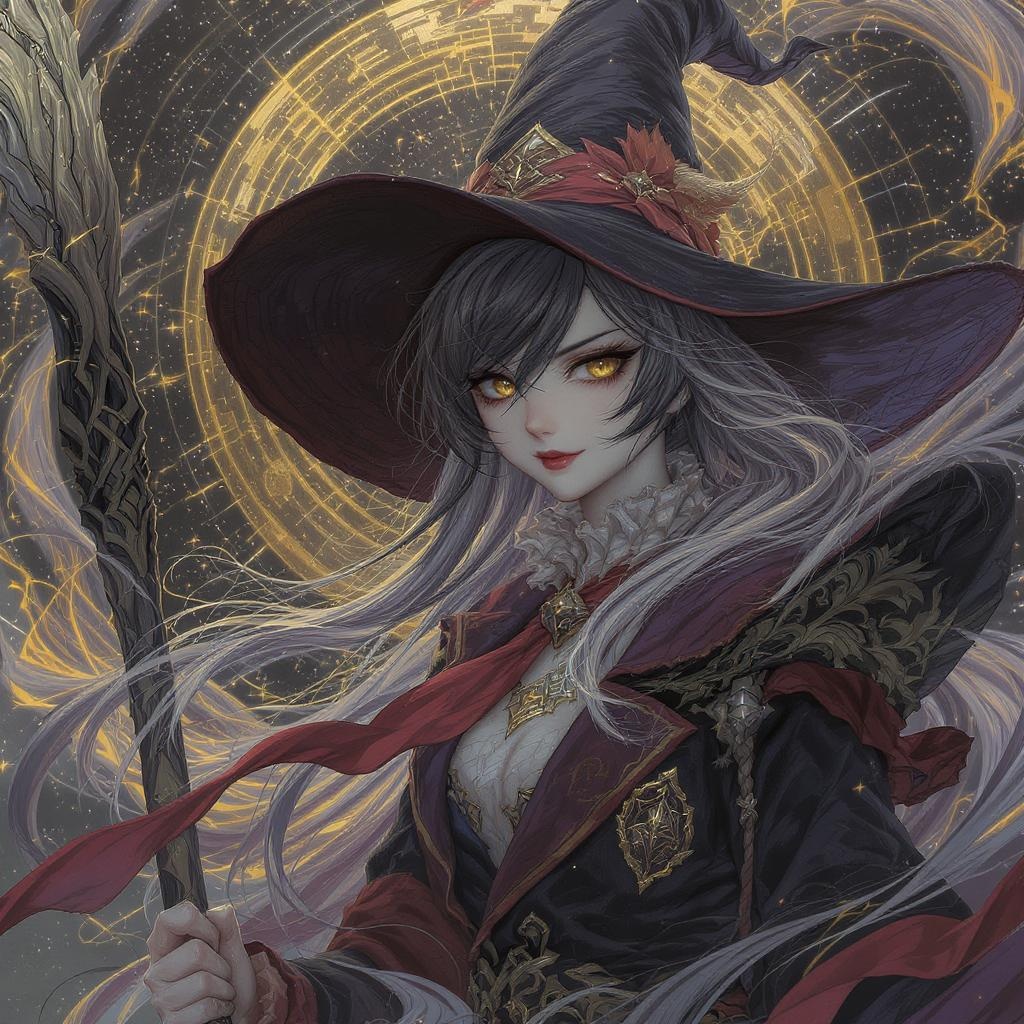 A mystical and rugged young witch adorned in an exquisitely detailed magic school uniform, her large, wide-brimmed hat casting a mysterious shadow over her face, cinematic in its presentation. The illustration captures an elaborate and elegant composition, presenting a masterpiece of digital painting and concept art. Her eyes glimmer with arcane knowledge, surrounded by ethereal and swirling magical energies. The scene, vibrant and dynamic, is reminiscent of the works of Ruan Jia and Hong Soonsang, with a hint of WLOP's shimmering light effects. Artgerm's dynamic style is woven into her poise, and the graceful, flowing lines echo Alphonse Mucha's influence. This captivating art piece is trending on platforms like ArtStation and Pixiv, drawing viewers into its spellbinding allure.