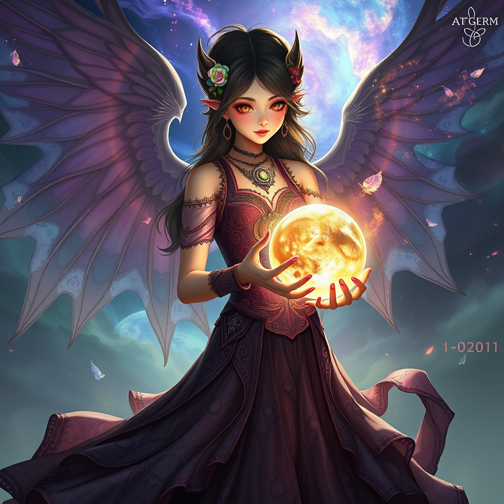 A mystical girl in an intricate gown cradles a glowing globe in her hands, embodying the spirit of an earth goddess, her presence woven with mythical allure. This captivating piece combines realistic fantasy with exquisite detail, reminiscent of anime fantasy illustrations. The artwork showcases a harmonious blend of Artgerm and Atey Ghailan's influences, infused with the ethereal touch of Guweiz's style. It's a stunning fantasy painting, capturing the essence of otherworldly beauty and enchanting imagination in digital art form.