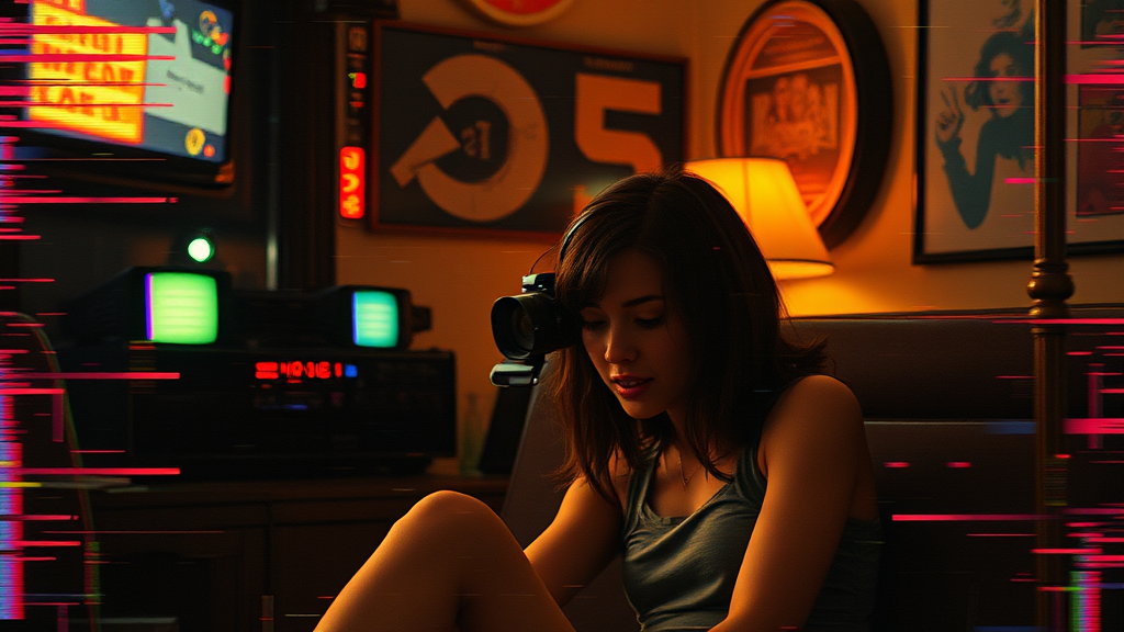 A nostalgic image attempts to rewind in time, marred by glitches and flickers, its once vivid emotions now a cascade of warped colors and fractured memories, as if the essence of the past is struggling to hold itself together amidst a storm of digital decay.