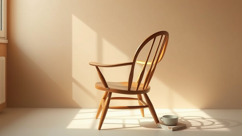 A photorealistic image captures the timeless elegance of the Wegner Wishbone Chair using a Leica Q2 with a fixed Summilux 28mm f/1.7 lens, highlighting the chair's iconic Y-back design and natural wood finish. The chair is positioned in a well-lit studio with a minimalist aesthetic, where the morning light softly accentuates its graceful curves and shadows. Behind it, a subtle beige backdrop enhances the chair's warm tones. The image is presented in 32K UHD resolution, showcasing intricate details that communicate the chair's status as a beloved staple of modern interior design. Creative modifications include a slightly raised seat and a polished sheen on the wood, adding a contemporary twist while maintaining the core essence.