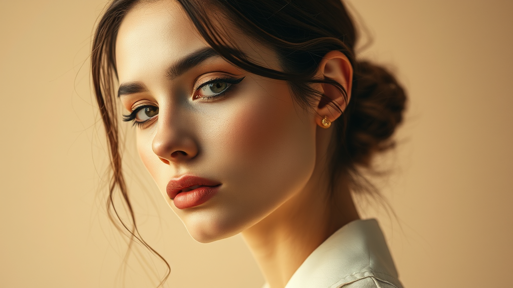 A portrait infused with the allure of broken pixels, embodying a vogue aesthetic with a Gucci flair. Features beige tones with a focus on slender elegance. The composition captures a chic and modern vibe, with a hint of digital decay, resulting in a mesmerizing and stylish visual narrative.