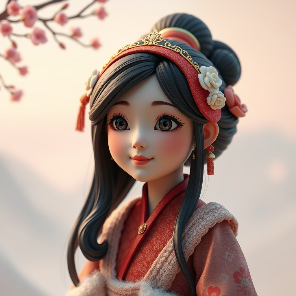 A portrait of a Chinese girl rendered in the style of Unreal Engine 5, blending elements of Disney animation with an essence of adorable toy sculptures. The image should evoke the artistic techniques of Charles Willson Peale, Jeremiah Ketner, and Mark Ryden, all while infusing a whimsical aurorapunk atmosphere. The composition should capture an elongated, elegant aspect ratio of 71:128, enhancing the sense of enchantment with a stylization level of 750, all set in a fantastical world that feels both timeless and contemporary.