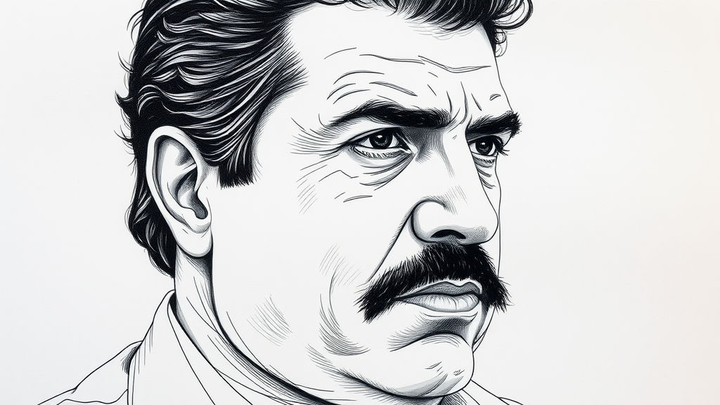 A portrait of Pablo Escobar sketch on paper featuring intricate and highly detailed lineart with breathtaking beauty. The artwork showcases vibrant and comprehensive cinematic elements in the style of Charles Dana Gibson. It includes deliberate imperfections like jpeg artifacts, misplaced details, and exaggerated features. Some anatomical details are distorted, such as extra limbs and missing digits, while other parts might appear disfigured or out of focus, giving it a surreal and mutated appearance. The piece embraces a low-resolution aesthetic reminiscent of Vice City, complete with unavoidable text imperfections and unintentional watermarks.