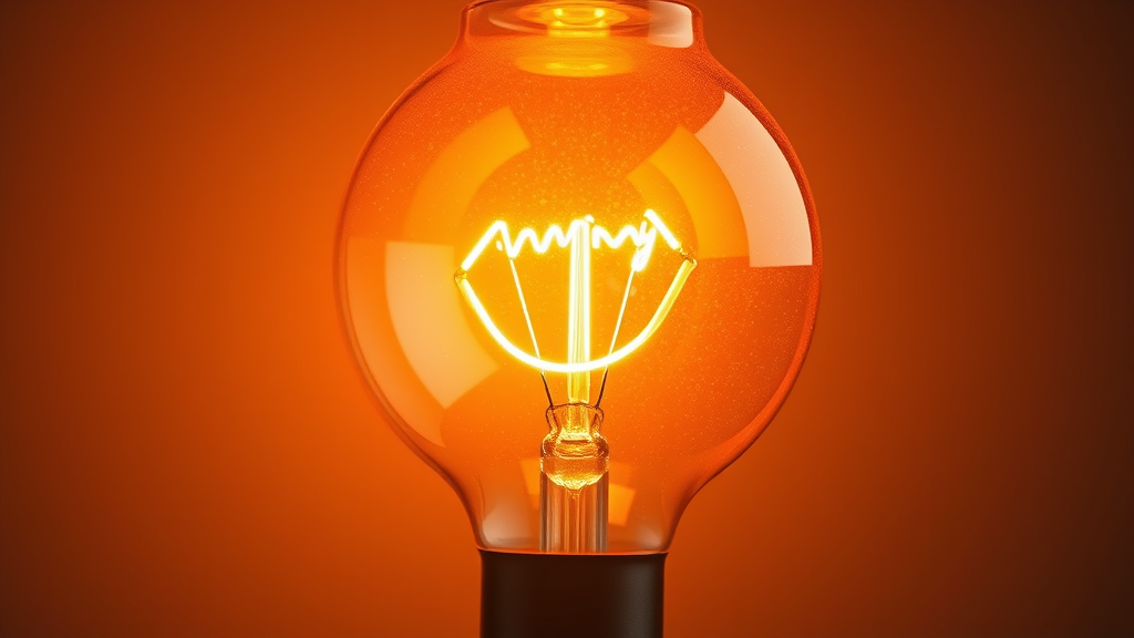 A radiant light bulb with a playful twist, featuring a glowing filament shaped like a smile, encased in a sleek, modern glass design with a gradient of warm amber tones emanating a sense of innovation and inspiration.