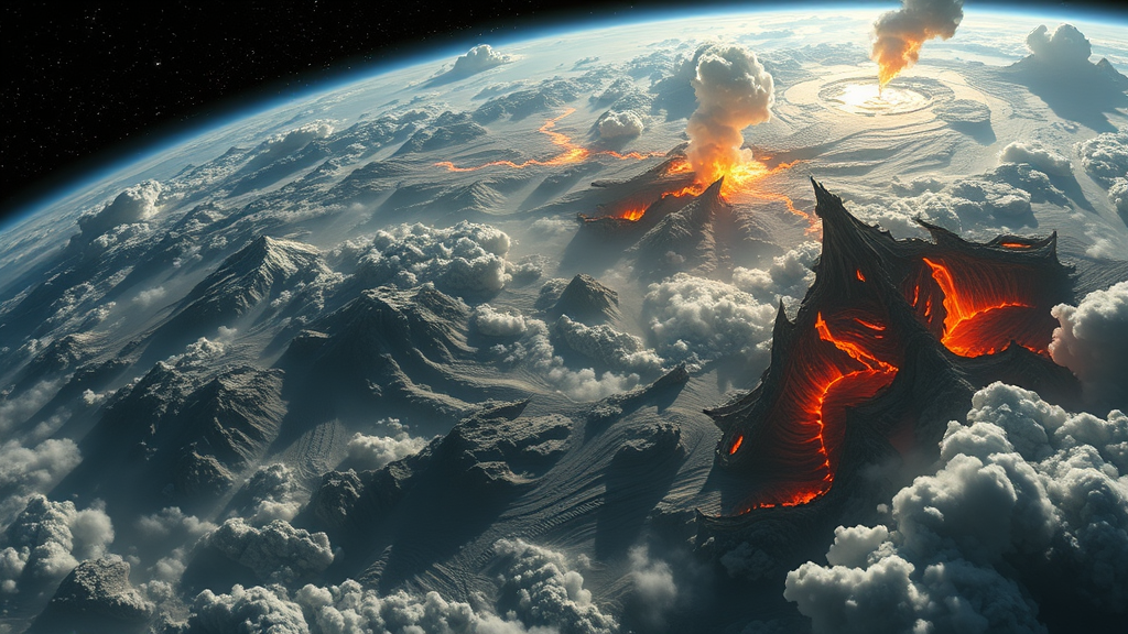 A realm within a realm: five fantastical landscapes viewed from the expanse of space, exquisitely detailed; ethereal and infernal realms intertwined.