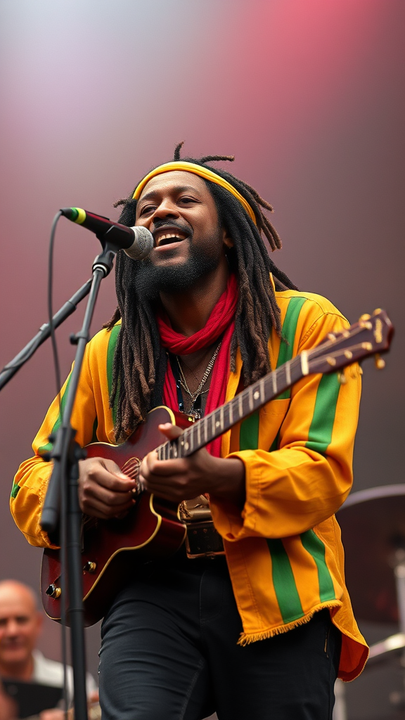 A reggae legend whose music carries messages of unity, peace, and resistance against oppression, evoking a spirit of resilience and cultural pride.